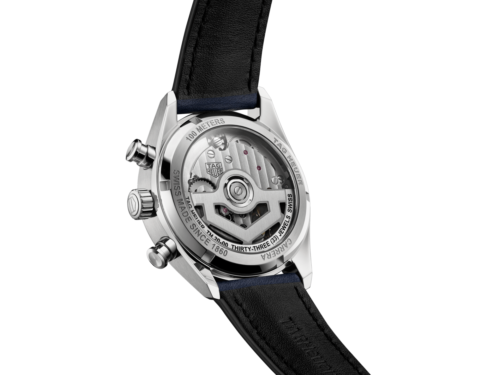 Reimagined from the reverse panda 2447 NS model, this prestigious black 39mm version of the TAG Heuer glass box encapsulates the Carrera’s signature design with a modern twist. With its luxurious perforated calfskin leather strap, this watch is resolutely driven to dare.