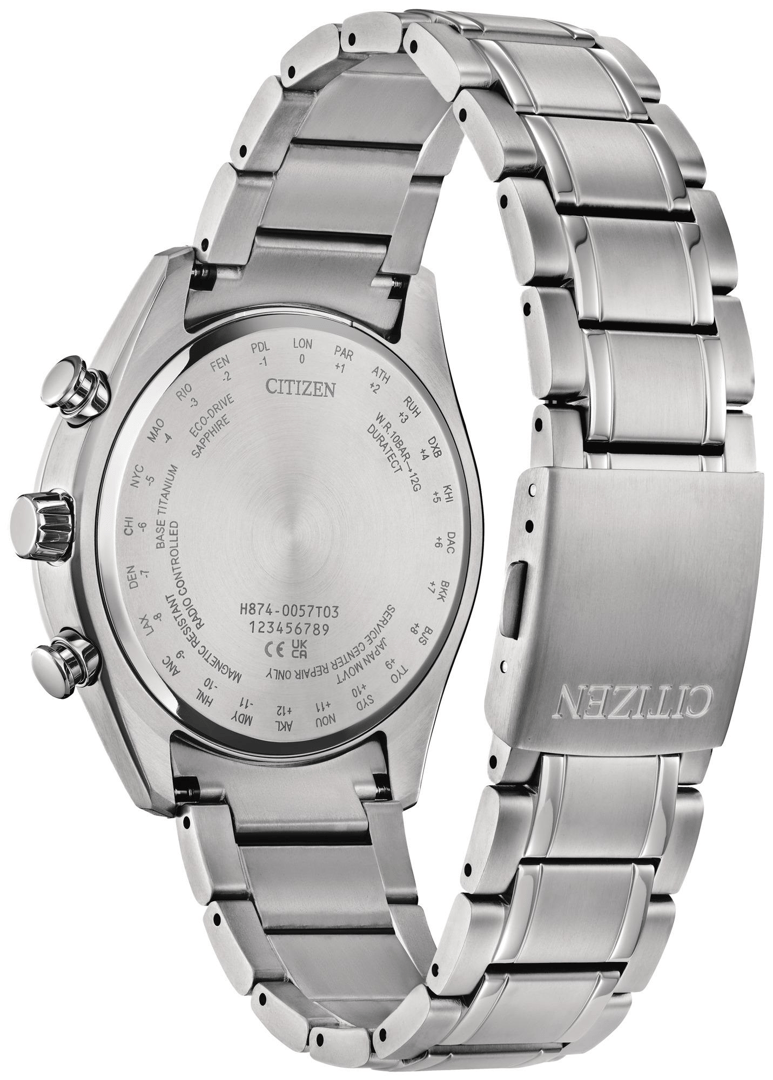 Specification: 24 World Cities Time 24hrs, Date and Day Display Eco-Drive (recharged by any light source, no need for regular battery replacement) Global Radio-Controlled Insufficient Charge Warning Function Luminous Hands and Index Magnetic resistance Moon Phase Display Overcharge Prevention Function Perpetual Calendar Power Saving Function Summer Time ON / OFF