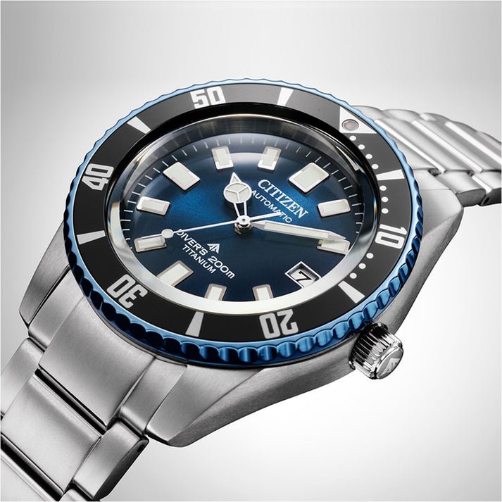 Inspired by an iconic design remastered Citizen The Challenge Diver debuted in 1977. It was found on Long Reef Beach in Australian in 1983, the watch was covered in barnacles after being submerged in the Pacific Ocean for years, but the movement inside had remained protected from the seawater and was still ticking. That history has inspired our new Promaster Mechanical Diver and given it the affectionate nickname, Fujitsubo – Japanese for barnacle. The lightweight and scratch-resistant Super TitaniumTM case and bracelet is complemented by a blue dial with embossed hands and a classic green luminous for a vintage feel, a rotating elapsed-time bezel, and an anti-reflective sapphire crystal. Come with automatic movement features enhanced magnetic resistance to protect against external magnetic fields, as well as a 42-hour power reserve and has ISO compliant water resistance up to 200 meters.