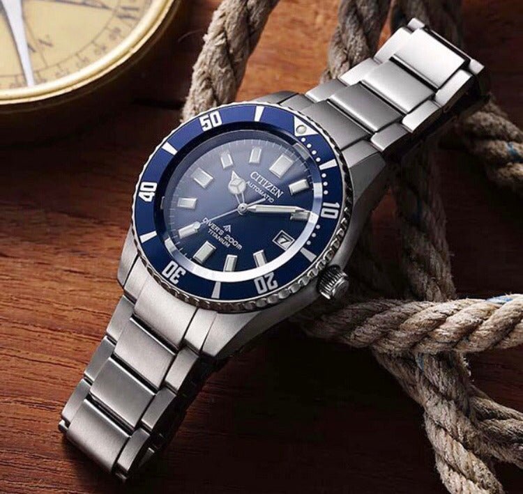 Inspired by an iconic design remastered Citizen The Challenge Diver debuted in 1977. It was found on Long Reef Beach in Australian in 1983, the watch was covered in barnacles after being submerged in the Pacific Ocean for years, but the movement inside had remained protected from the seawater and was still ticking. That history has inspired our new Promaster Mechanical Diver and given it the affectionate nickname, Fujitsubo – Japanese for barnacle. The lightweight and scratch-resistant Super TitaniumTM case and bracelet is complemented by a blue dial with embossed hands and a classic green luminous for a vintage feel, a rotating elapsed-time bezel, and an anti-reflective sapphire crystal. Come with automatic movement features enhanced magnetic resistance to protect against external magnetic fields, as well as a 42-hour power reserve and has ISO compliant water resistance up to 200 meters.