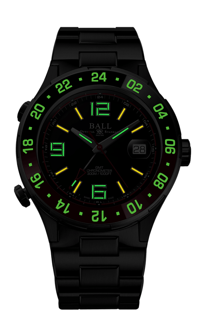 MICRO GAS TUBES: 28 micro gas tubes on hour, minute and GMT hands and dial for night reading capability