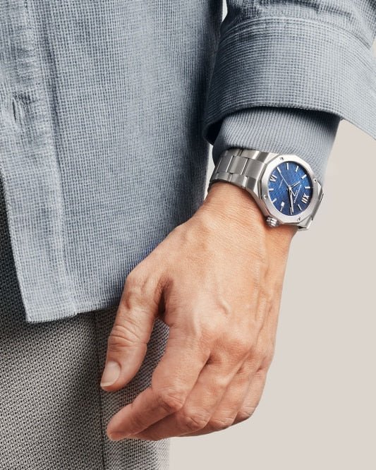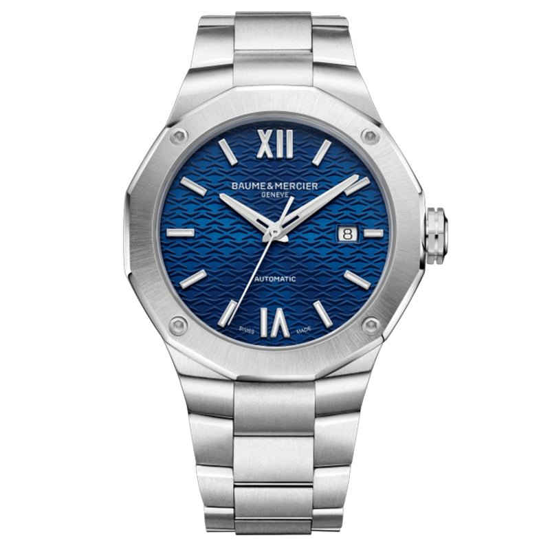 Sporty, dressy, casual, this Riviera is a multifaceted timepiece that will please many personalities. Equipped by a "swiss-made" automatic movement, it features a dodecagonal case, a blue dial adorned with a unique pattern and a metal bracelet. The perfect choice for people looking for versatility.