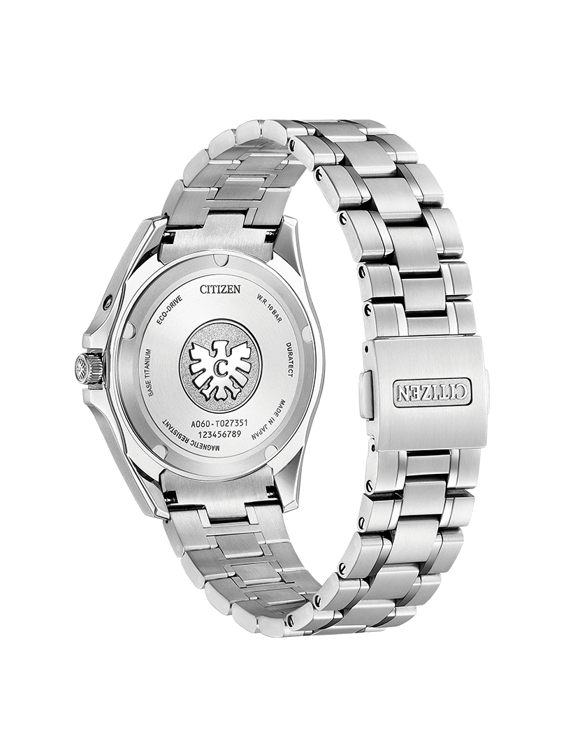 Inside the timepiece is the Citizen Caliber A060, accurate to ±5 seconds per year and equipped with Eco-Drive technology that's sustainably powered by any light and never needs a battery. Advanced features include a perpetual calendar, power reserve indicator, insufficient charge warning, energy saving function, shock detection, automatic hand position adjustment, time difference correction, midnight sharp calendar update function. Water resistant to 100 meters.