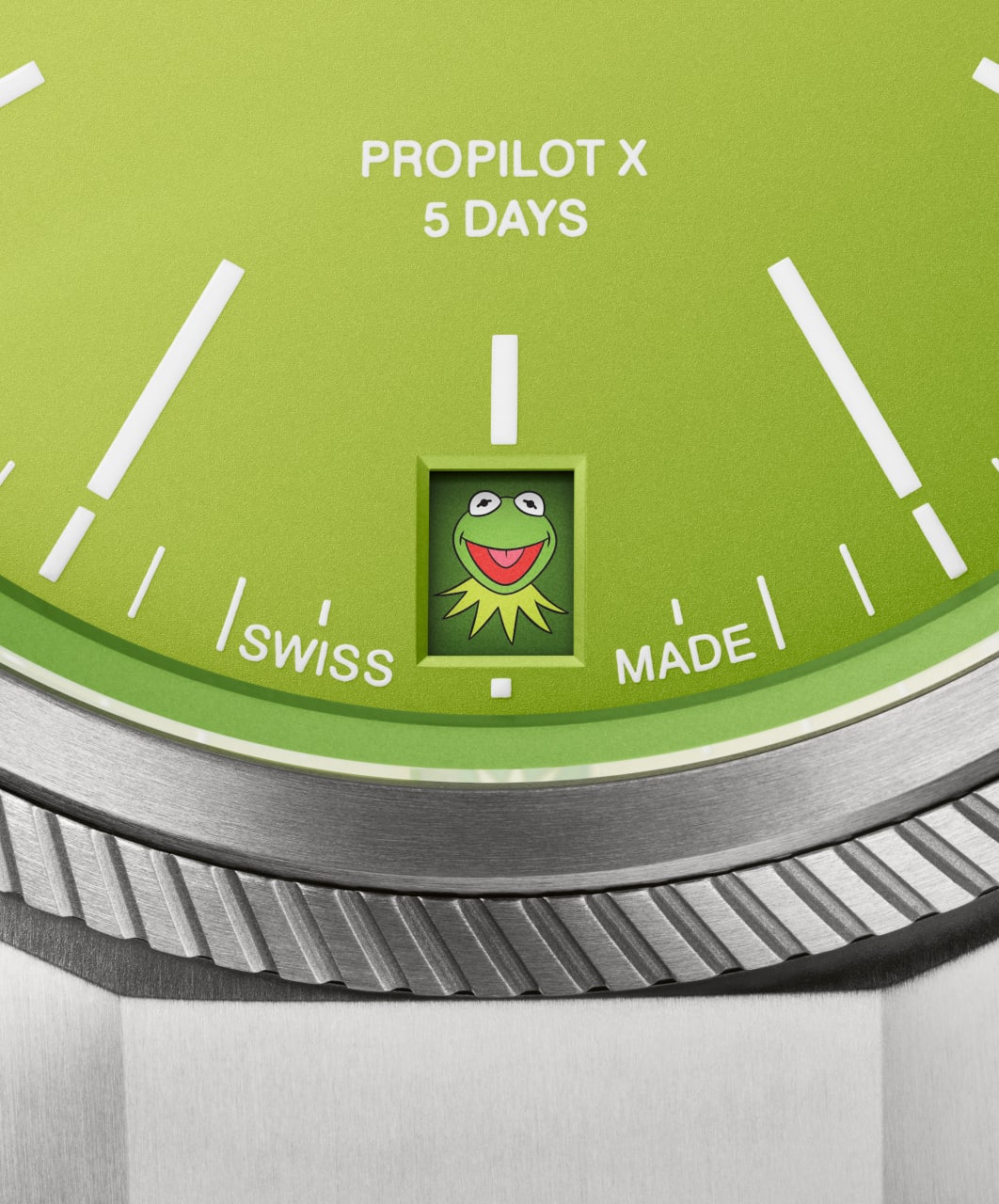 Meet the ProPilot X Kermit Edition, created in collaboration with our friend and inspiration Disney’s Kermit the Frog. Every first of the month, Kermit appears in the date window, reminding you to make a little time for yourself.