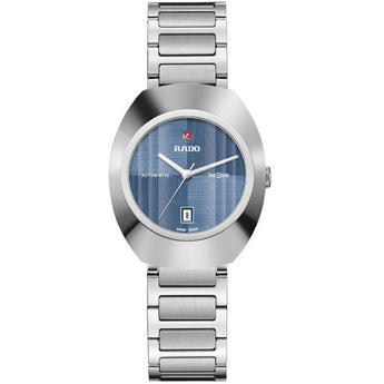 An iconic symbol of Swiss craftsmanship and pioneering innovation. The Rado Diastar is designed for those who dare to embrace the extraordinary. The 30 mm case, crowned by a polished platinum-coloured Ceramos™ bezel, merges effortlessly with a polished stainless-steel middle case, offering water resistance up to 10 bar (100 metres). The blue dial, brushed in two directions, plays elegantly with light, highlighting the iconic silver-coloured moving anchor and a meticulously positioned date window at 6 o’clock. Rhodium-coloured hands with white Super-LumiNova® ensure perfect readability at all times. This refined display is safeguarded by vertical faceted sapphire crystal with anti-reflective coating inside. At its heart lies the automatic R586 calibre, finely regulated in five positions and featuring a Nivachron™ hairspring, this movement delivers a high level of accuracy and 48-hour power reserve. The overall appearance of this iconic timepiece is completed with a stainless-steel bracelet, blending polished links and brushed middle links, secured by a 3-fold clasp.