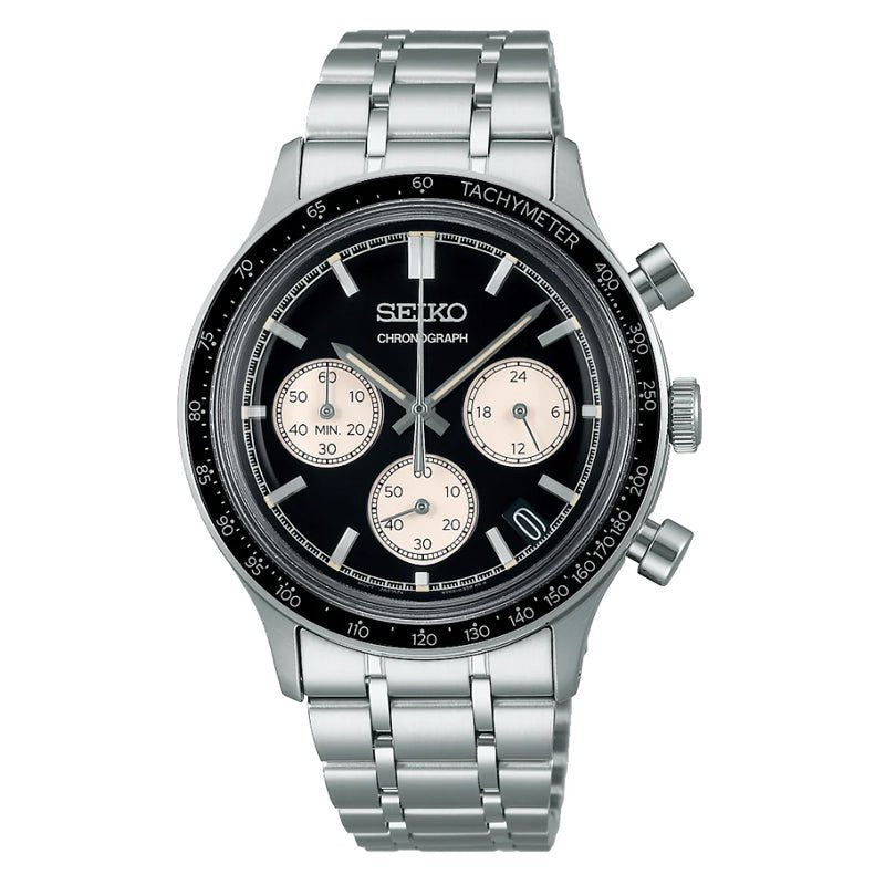 The Seiko SSB479P1 Chronograph strikes a refined balance of classic aesthetics and sporty functionality. Housed in a compact 38.7mm stainless steel case, it features a clean dial with chronograph subdials, a 24-hour indicator, and a date display. The reliable 8T63 quartz movement delivers 1/5-second stopwatch precision for up to 60 minutes. With a box-shaped Hardlex crystal, tachymeter scale, and LumiBrite hands and markers, this timepiece blends form and function. Water-resistant to 5 bar and finished with a three-fold clasp, it’s built for everyday sophistication.