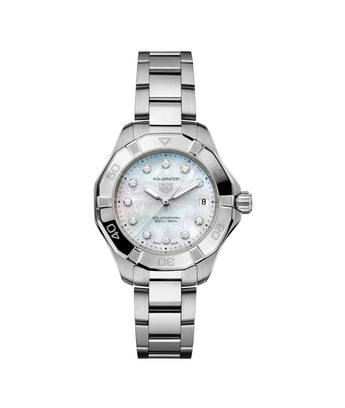 Elevate your elegance with this TAG Heuer Aquaracer, beautifully marrying luxurious elements with high functionality. Outfitted with the Solargraph Calibre TH50-01, this 34 mm timepiece harnesses solar energy, ensuring it remains a reliable companion for every journey.