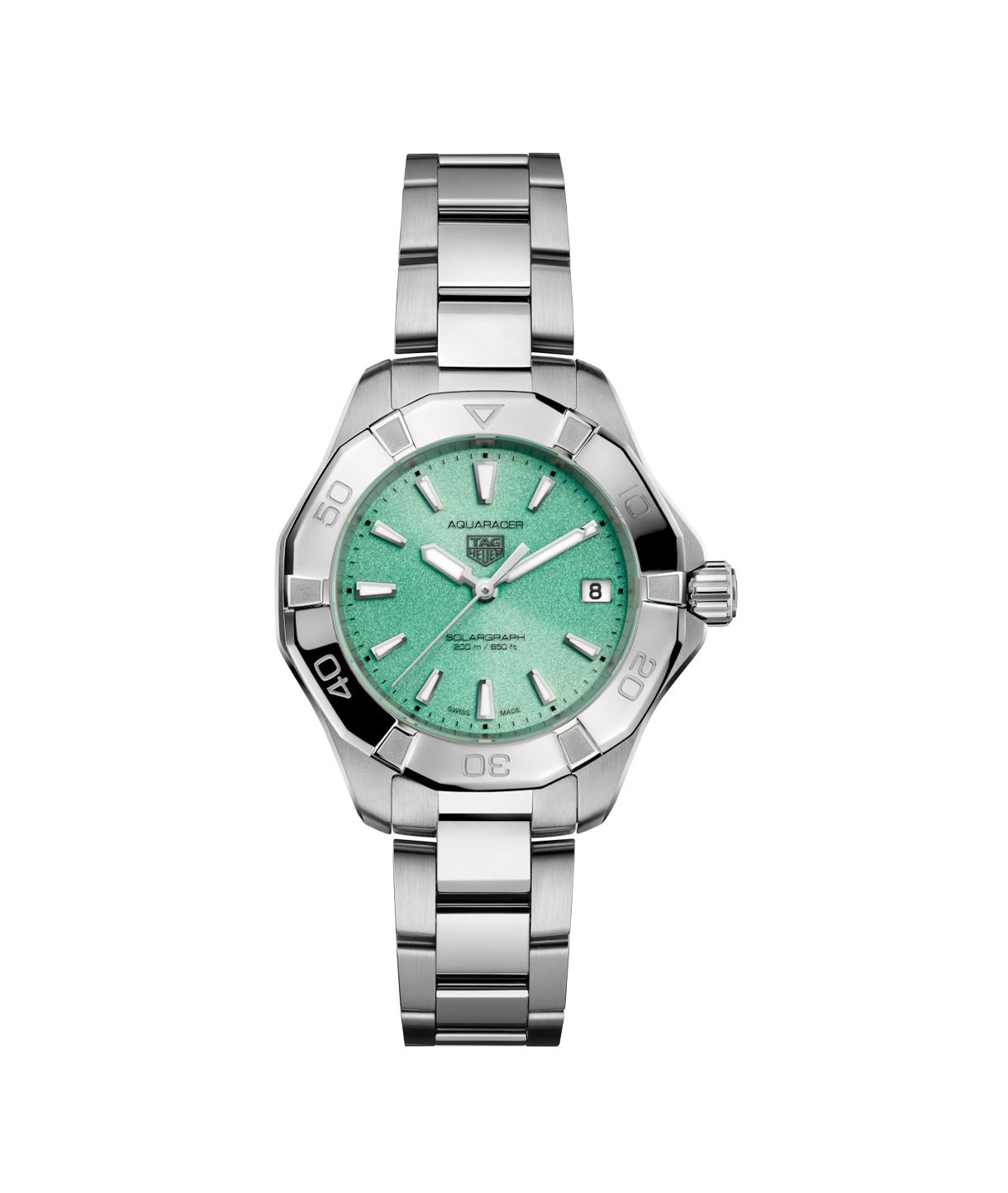 Immerse yourself in the celestial allure of the northern lights with this TAG Heuer Aquaracer, equipped with the advanced Solargraph Calibre TH50-01. This elegant yet resilient 34 mm timepiece is tailored for the modern explorer, offering a blend of rugged adventure readiness and urban sophistication.
