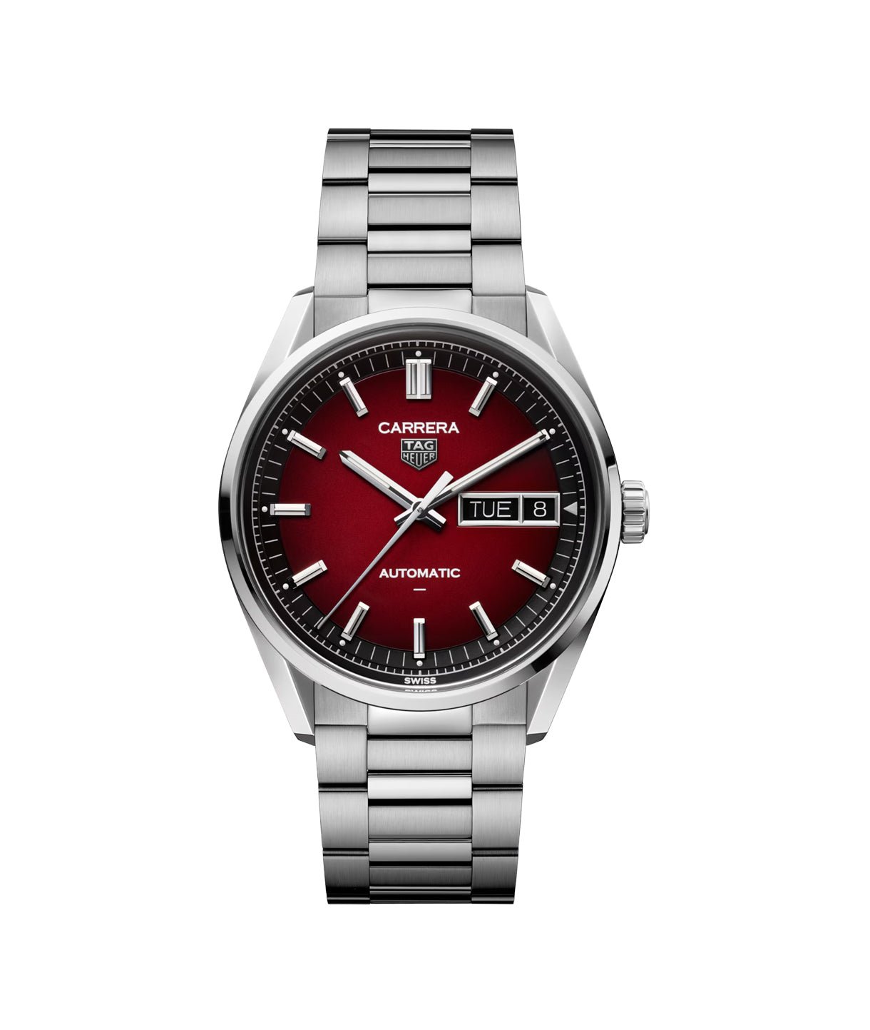 The TAG Heuer Carrera Day-Date in smokey red brings boldness to the collection. Powered by the TH31-02 movement, this eye-catching timepiece elevates timeless design with a modern twist.