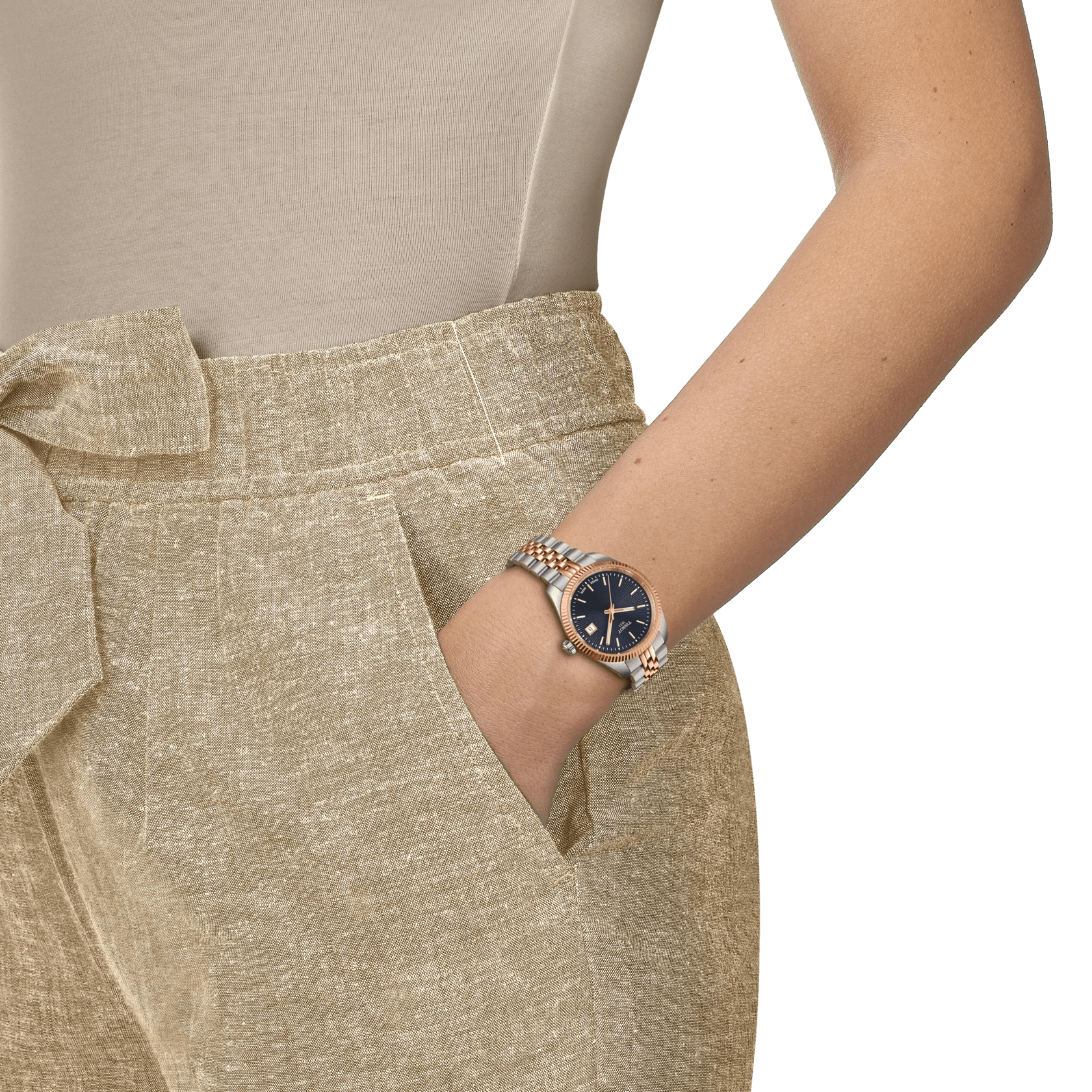 This watch is crafted to elevate your style for those truly special moments. The traditional guilloché dial with sunbeam rays reflects light beautifully, adding depth and elegance. The fluted bezel offers a sophisticated decoration representative of traditional watchmaking craftsmanship. The interchangeable quick-release bracelet offers maximum versatility, allowing you to easily change your look.