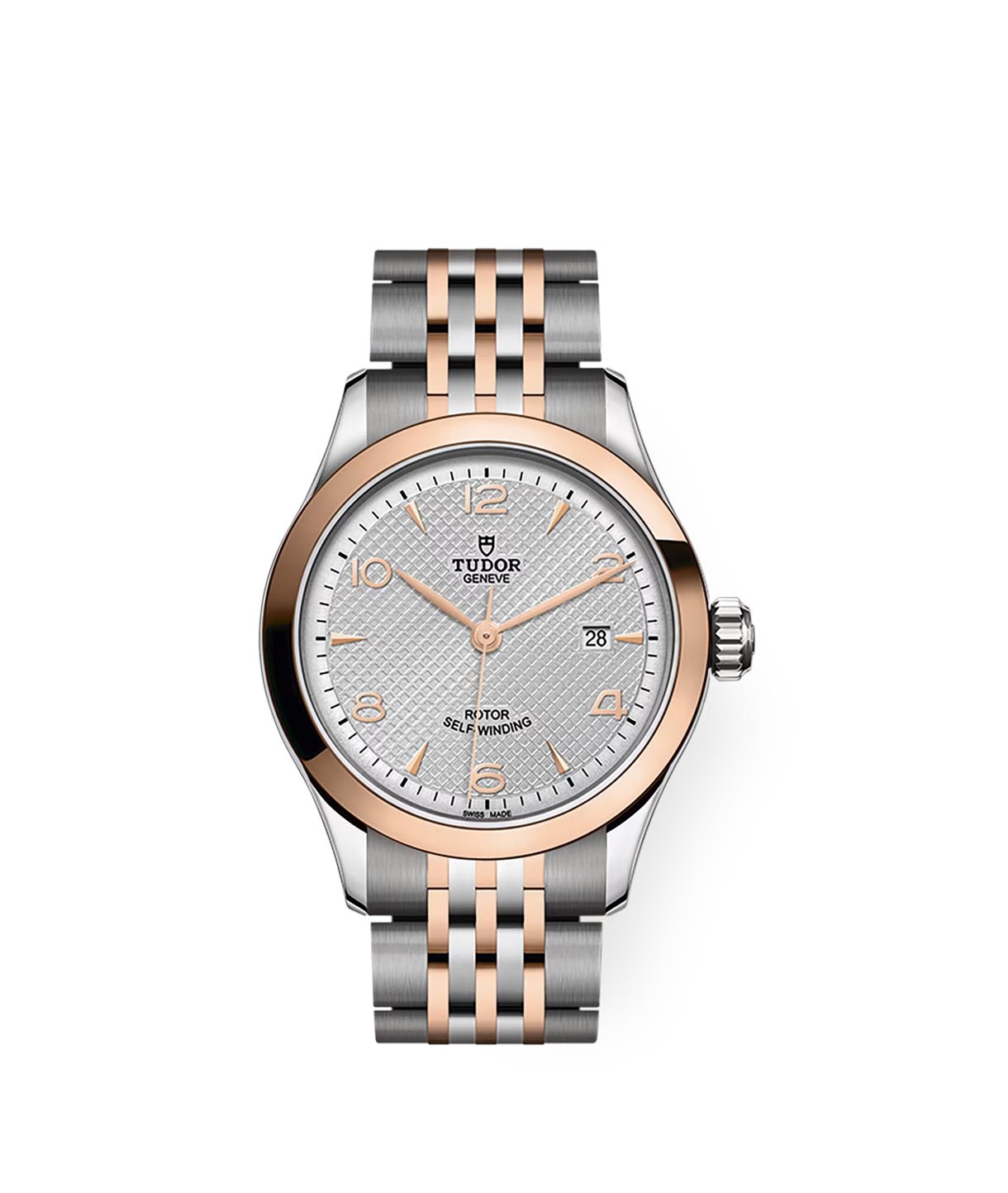 First center links in steel or solid rose-gold. Remaining center links in steel or steel covered by a 0.2mm rose gold cap