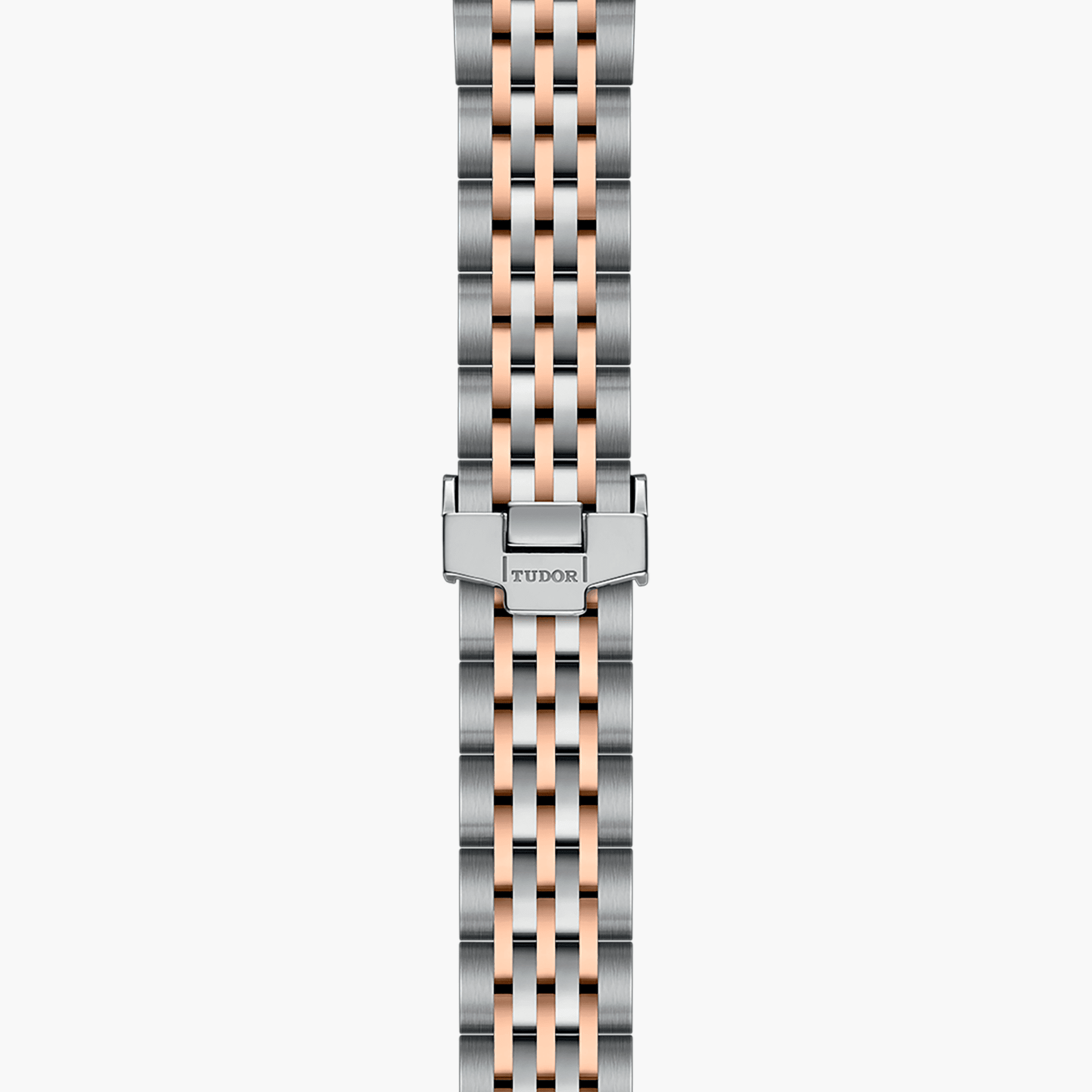 First center links in steel or solid rose-gold. Remaining center links in steel or steel covered by a 0.2mm rose gold cap