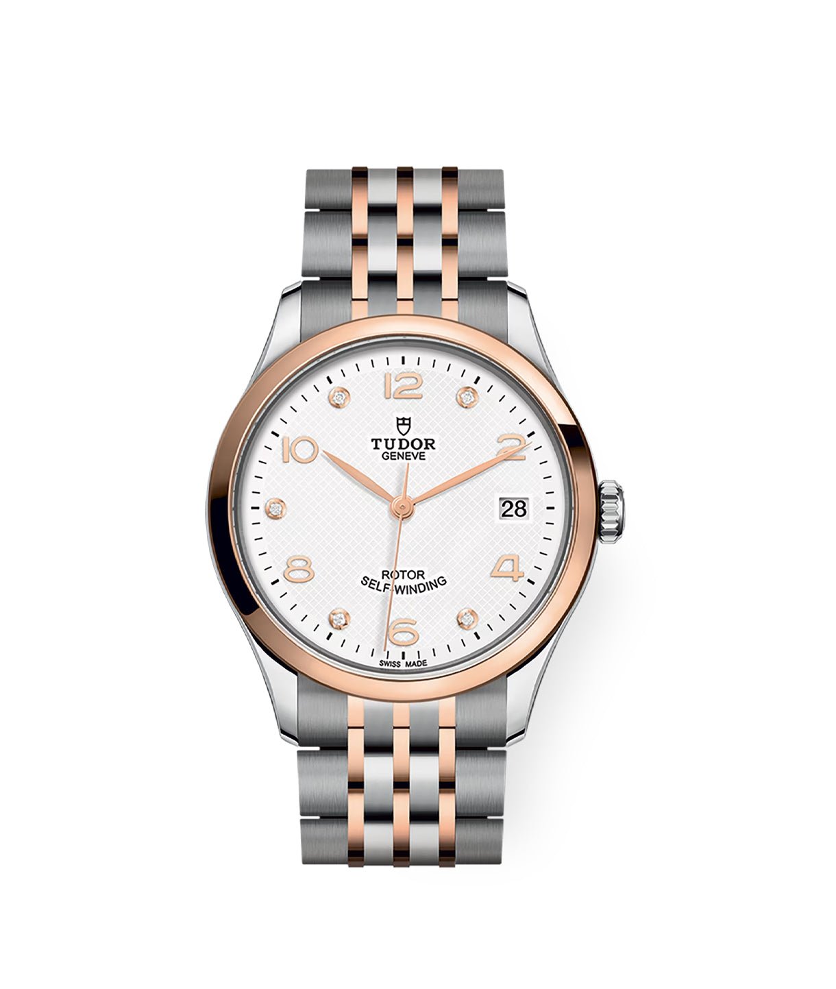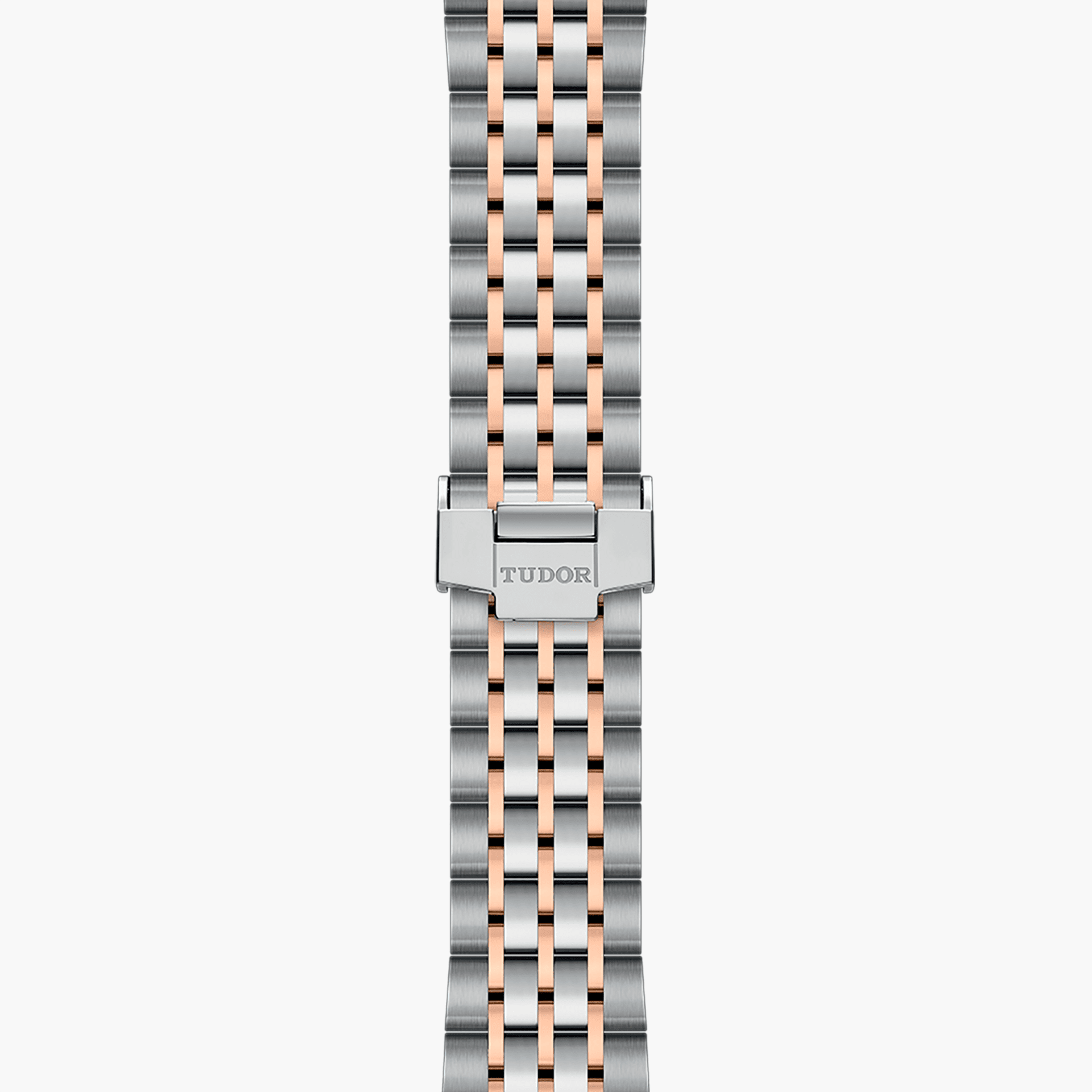 First center links in steel or solid rose-gold. Remaining center links in steel or steel covered by a 0.2mm rose gold cap