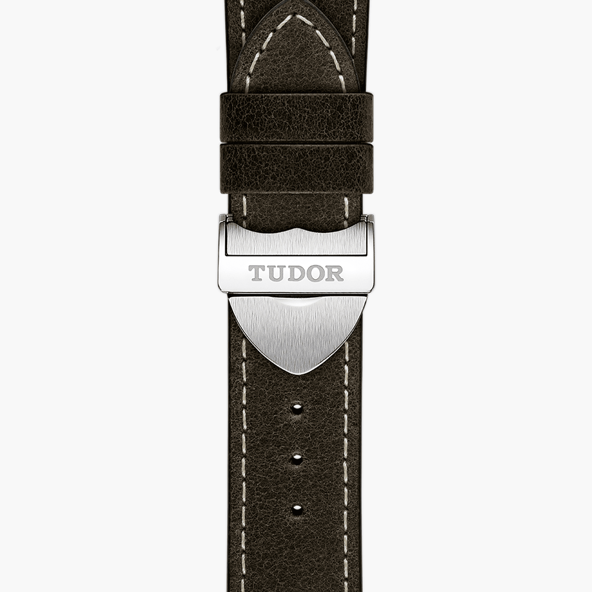 Brown leather strap with steel folding clasp and safety catch