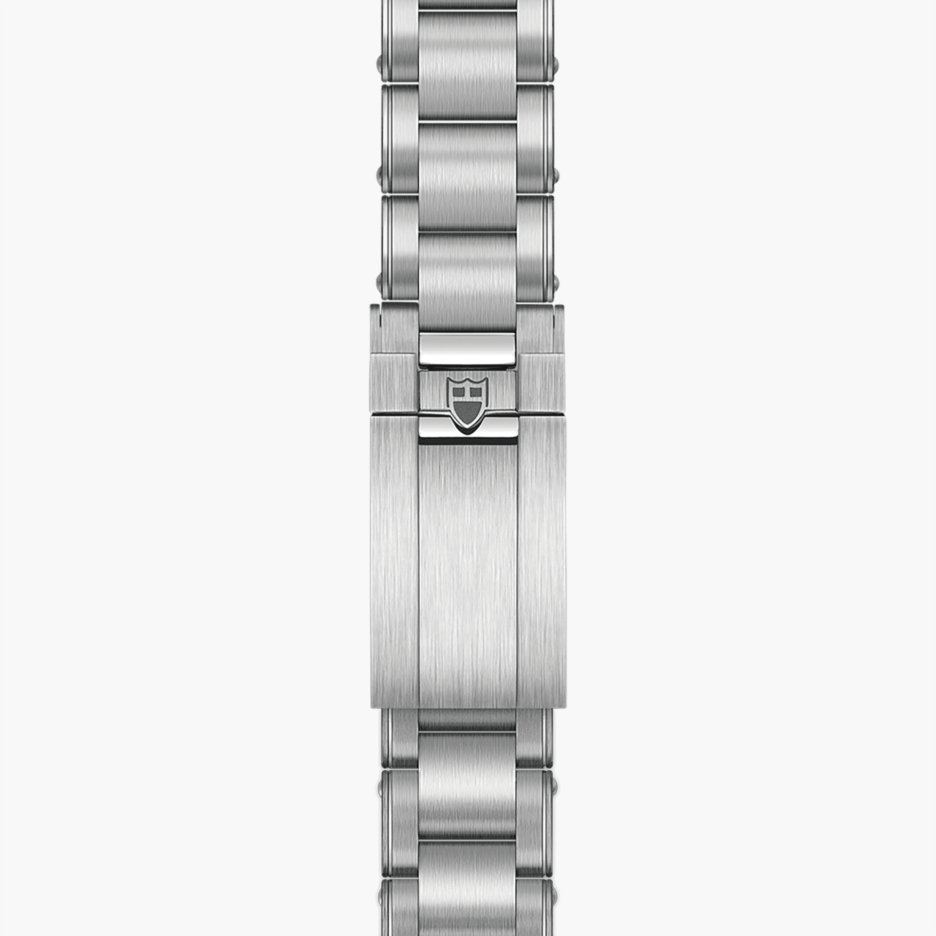 Riveted steel bracelet with polished and satin finish, and TUDOR “T-fit” clasp with rapid adjustment
