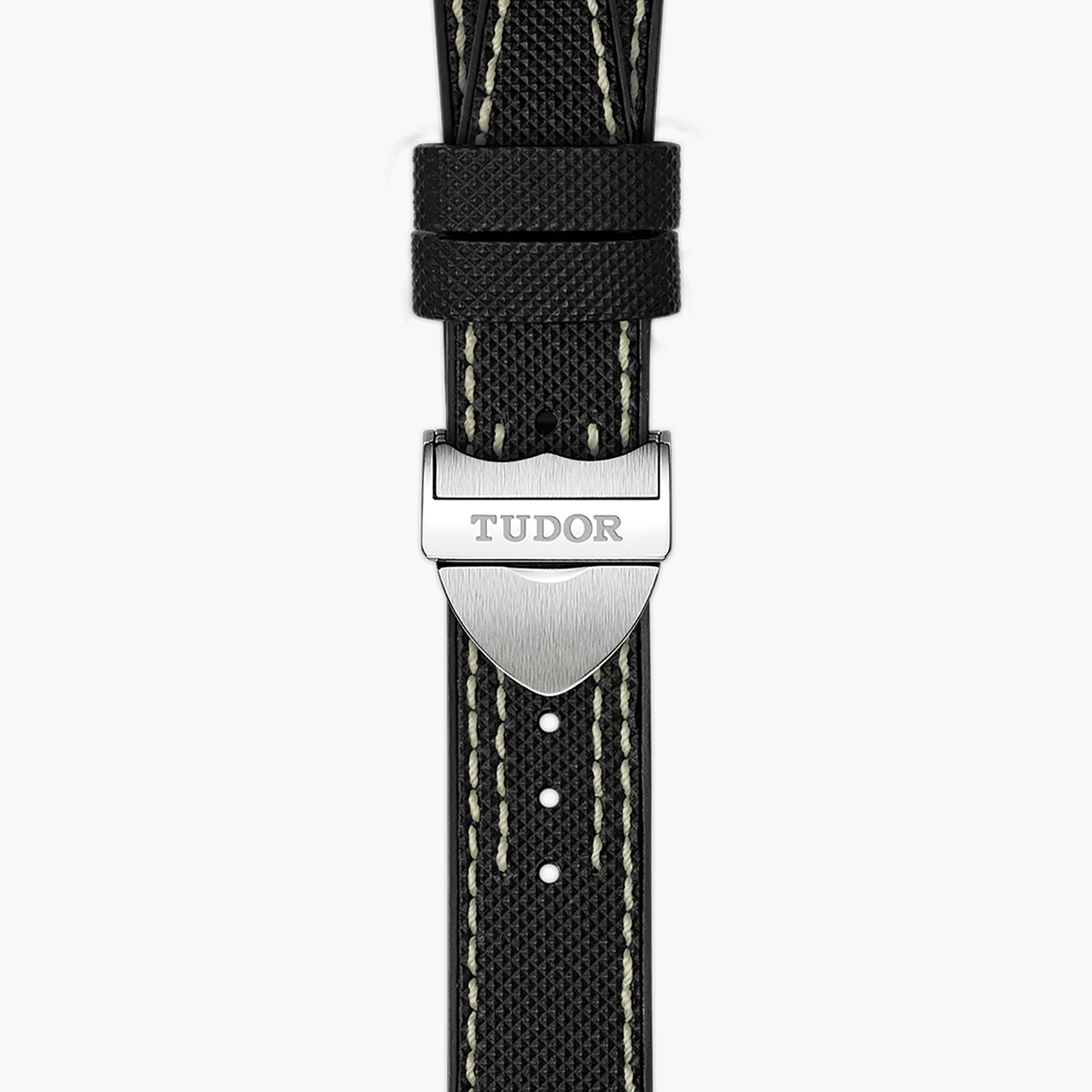 Hybrid rubber and leather strap with steel folding clasp and safety catch