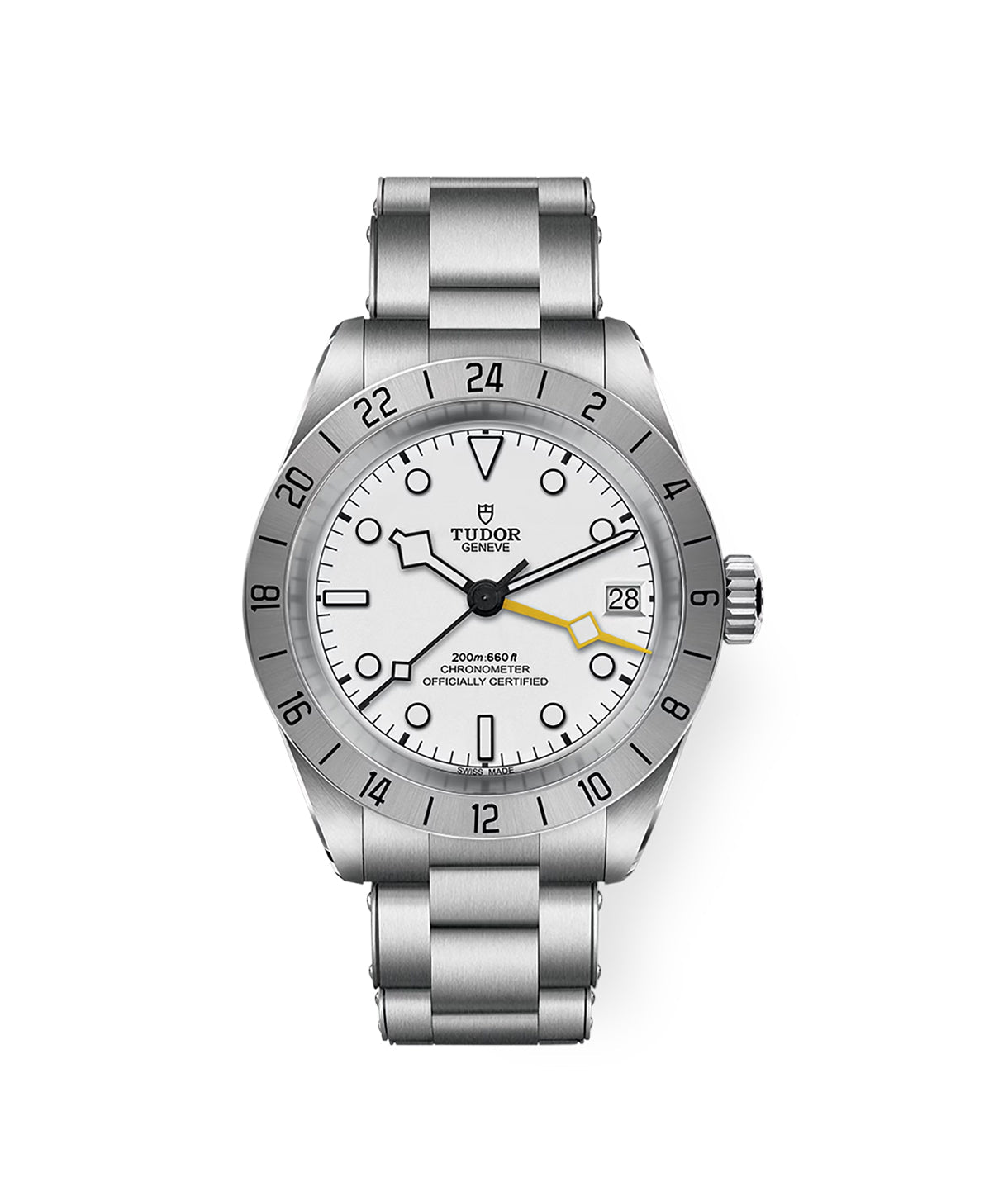 24-hour graduated fixed bezel in satin-brushed steel