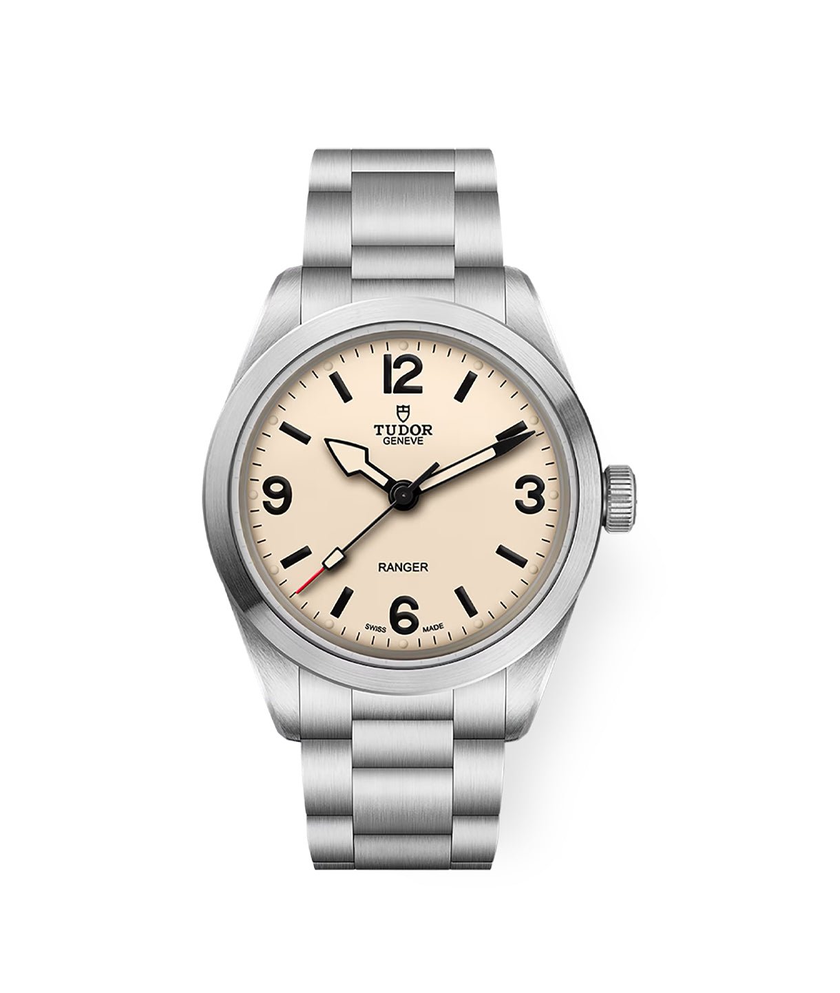 Steel bracelet with three links and a folding clasp with the TUDOR “T-fit” safety catch