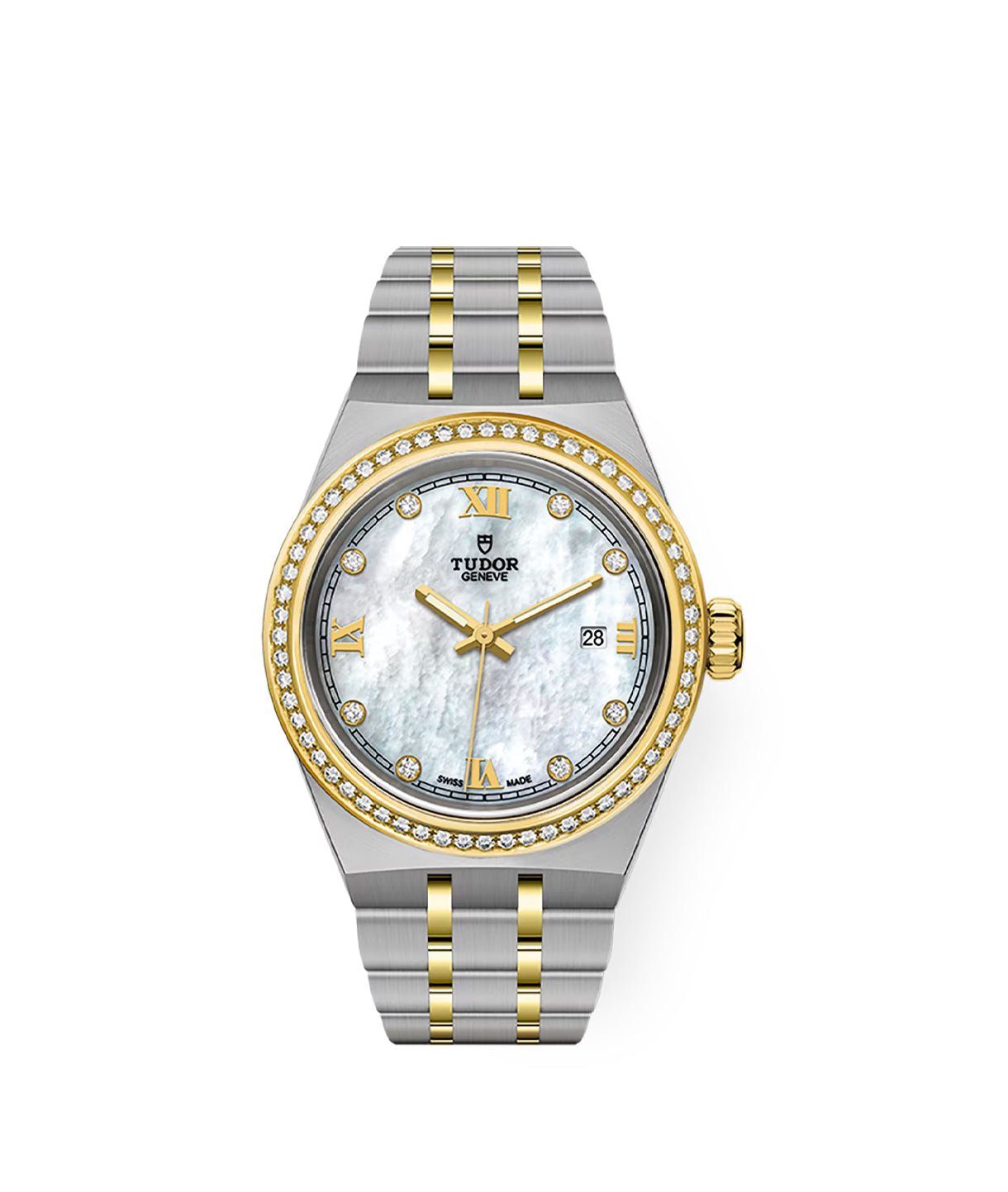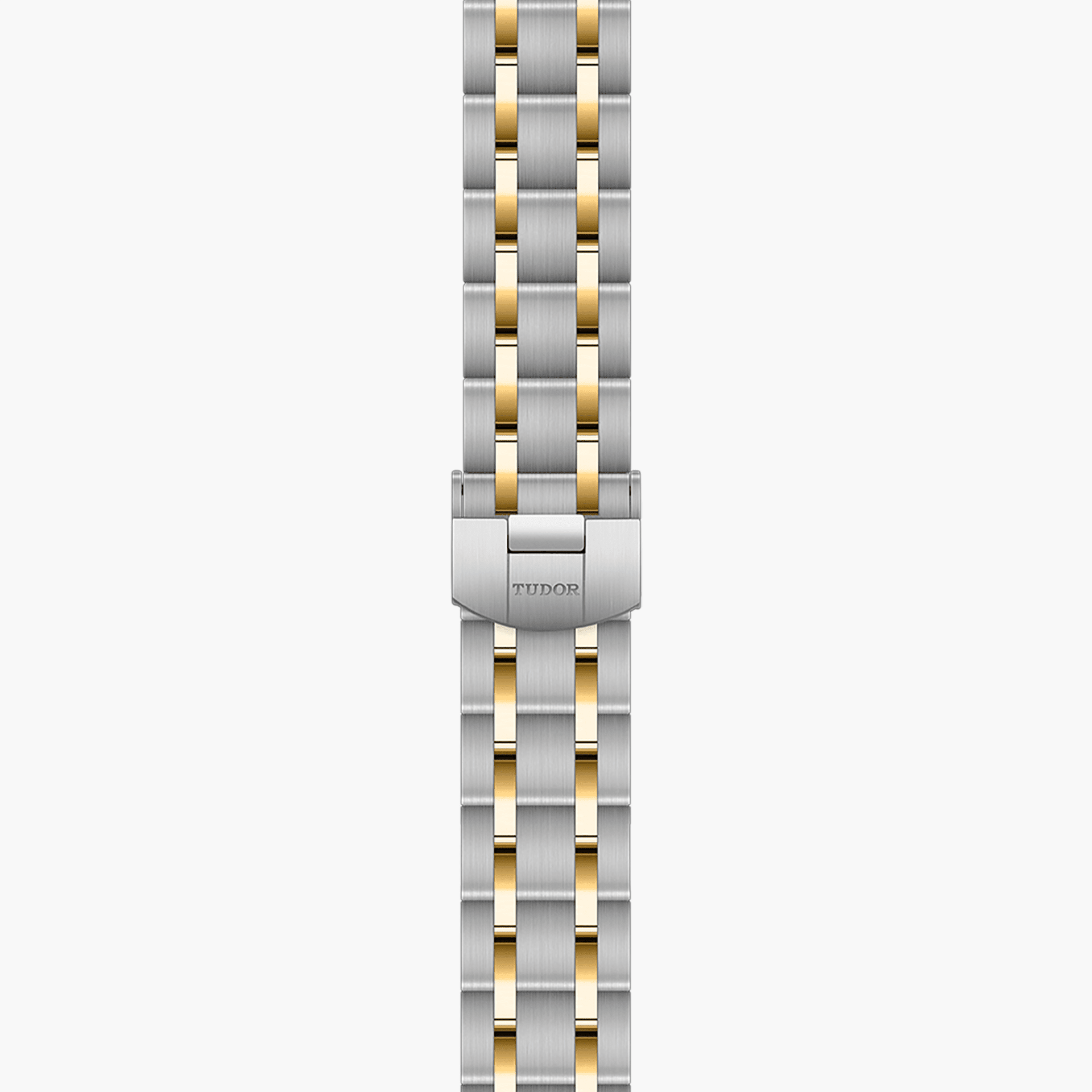 Screw-down winding crown with the TUDOR logo. Steel covered by a 0.1mm yellow gold cap