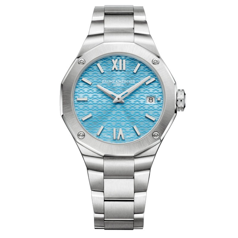 Driven by a “Swiss Made" quartz movement, this Riviera is adorned with an azure blue dial and mounted on a metal bracelet giving a lightful look to this timepiece. Recommended for assertive personnalities.