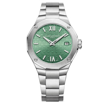 Driven by a “Swiss Made" quartz movement, this Riviera is adorned with a light green dial and mounted on a steel bracelet giving a lightful look to this timepiece. Recommended for assertive personnalities.