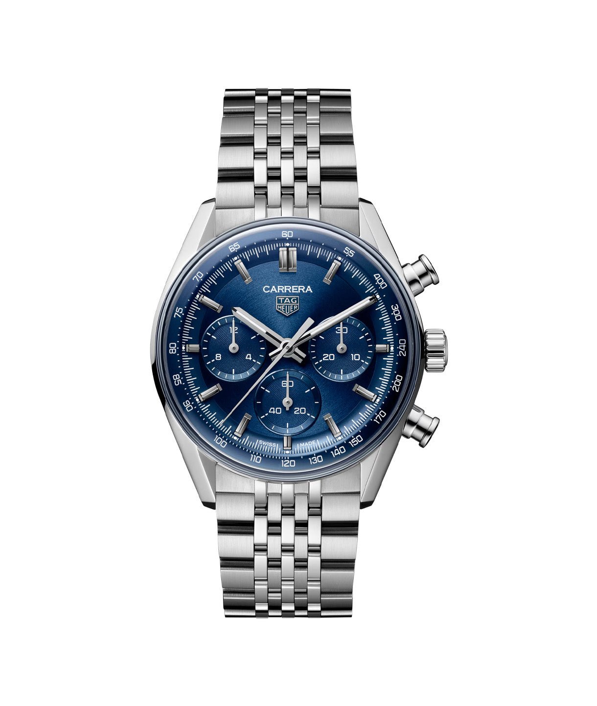 With its captivating blue circular-brushed dial, this 41mm TAG Heuer Carrera Chronograph combines striking presence with refined balance. A tribute to precision and performance, it embodies the spirit of motorsport in a timeless, versatile design powered by the in-house automatic Calibre TH20-01.